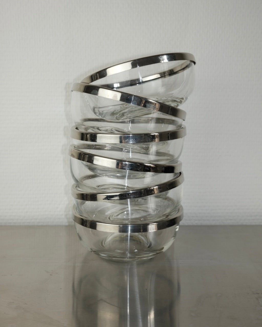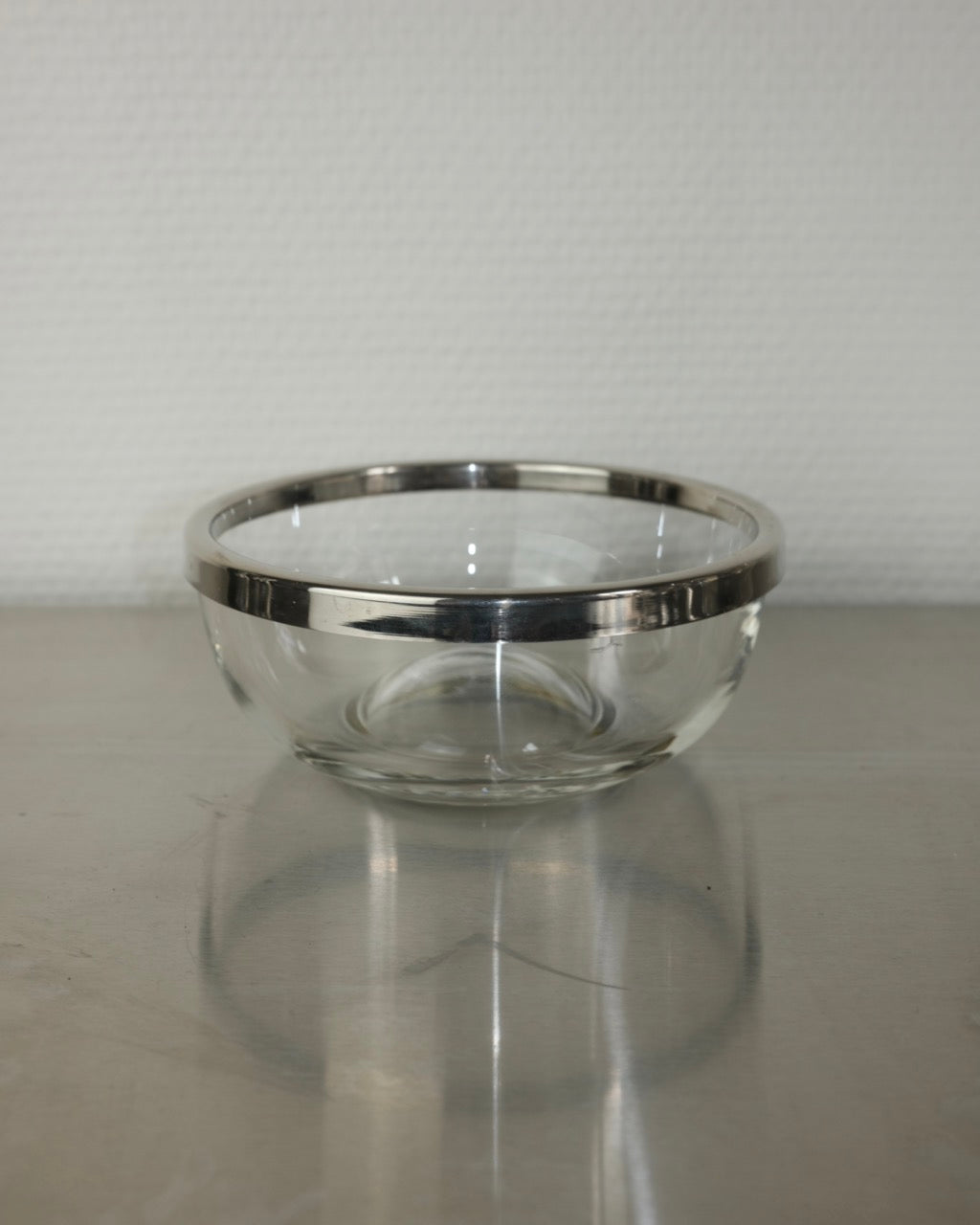 petit bol en verre et cerclage en metal argenté