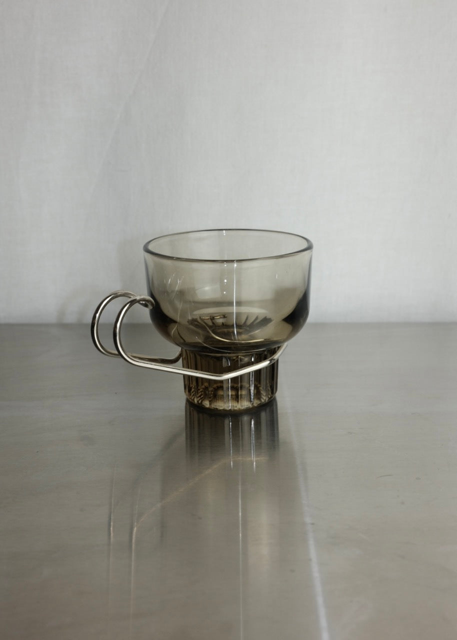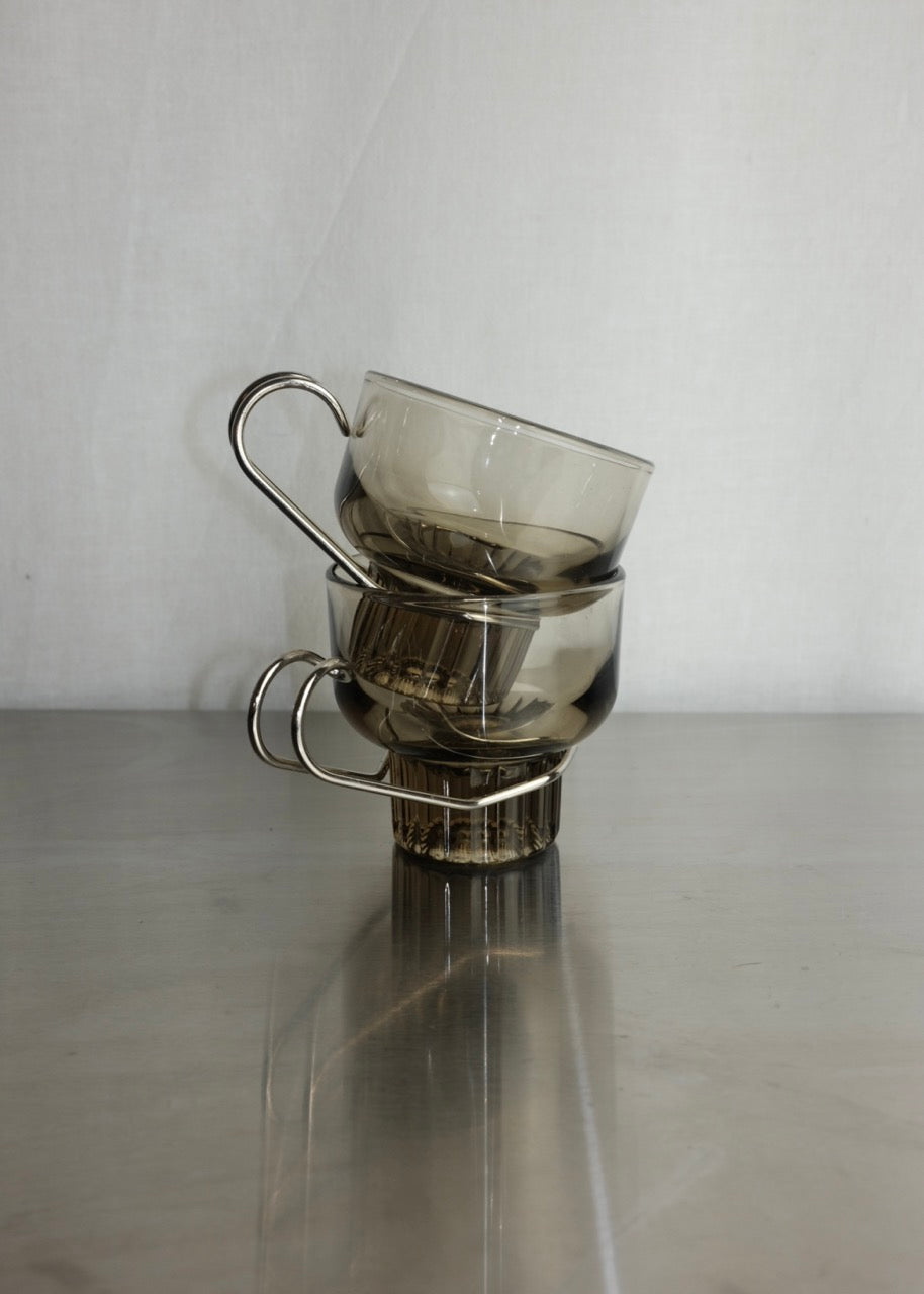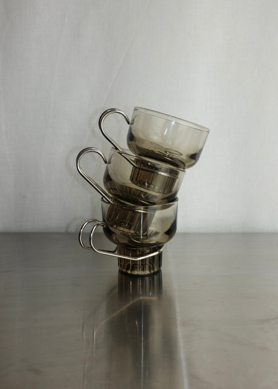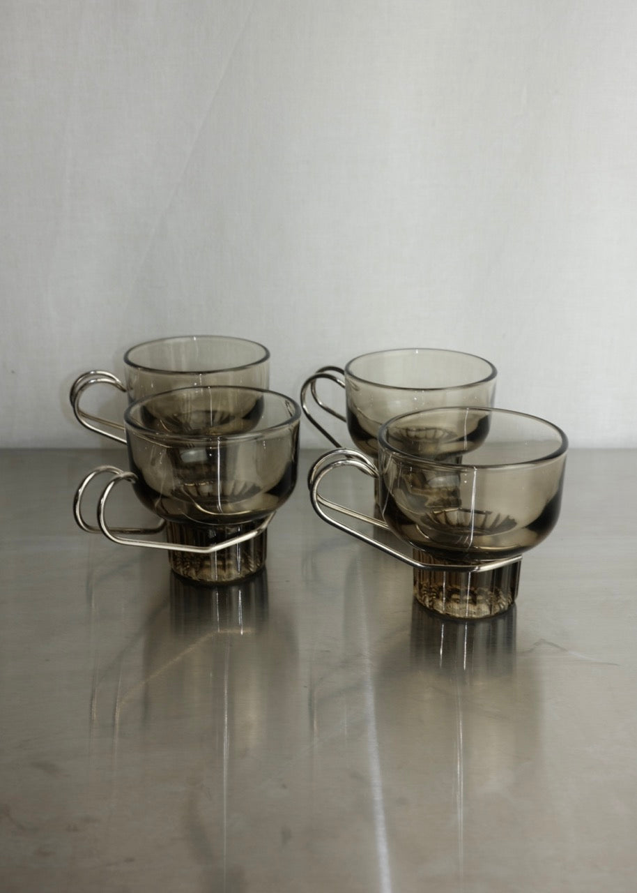 set de 4 tasses à espresso en verre ambré et chrome